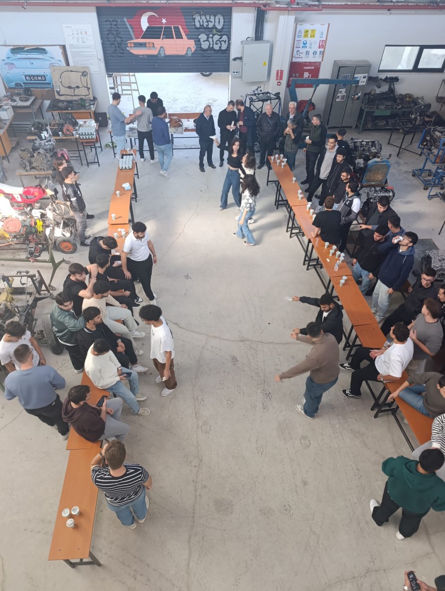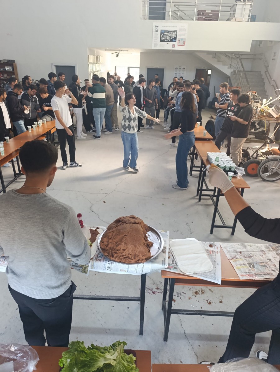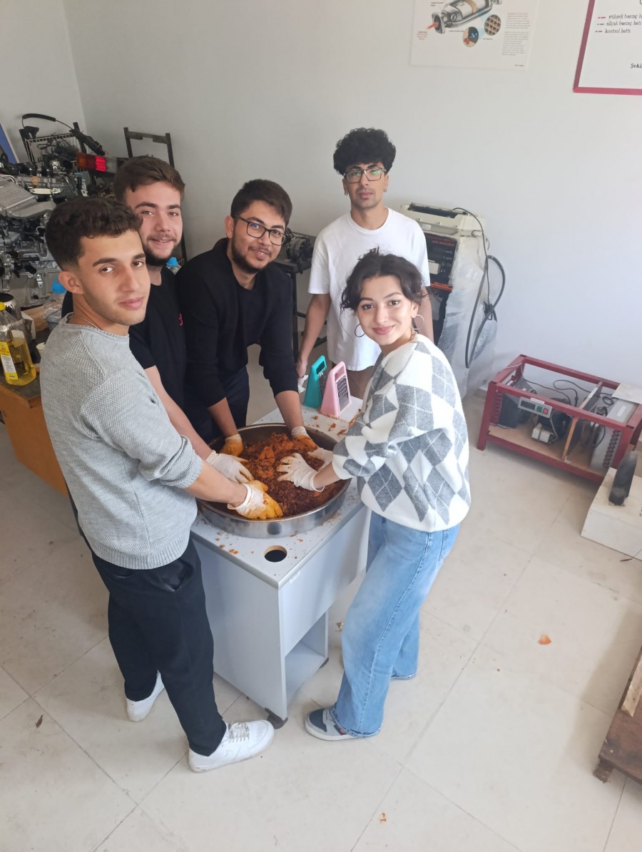 Motorlu Araçlar ve Ulaştırma Teknolojileri Bölümü Otomotiv Teknolojisi Programı 1. ve 2. sınıf öğrencileri, 22 Ekim 2025 Çarşamba günü gerçekleştirilen geleneksel hale gelen çiğ köfte partisi etkinliğinde bir araya geldiler. Etkinlik Meslek Yüksekokulu Müdürü Öğr. Gör. Ertuğrul Bilgücü, akademik ve idari personelin katılımlarıyla gerçekleşti. Öğrencilerin motivasyonunun yüksek olduğu gözlenen etkinlik, neşeli bir şekilde sona erdi.
