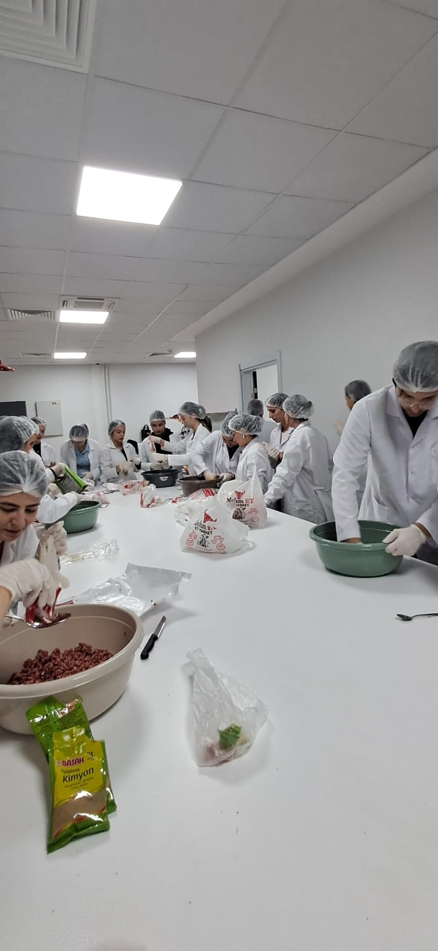 Gıda Teknolojisi Programı 2. Sınıf öğrencilerimiz Et Teknolojisi dersi kapsamında sucuk köfte üretmişlerdir. Dr. Öğr. Üyesi A. Gülin Eser eşliğinde, öğrencilerimiz 7 ayrı gruba ayrılmış ve her grup kendi geliştirdikleri baharat formülasyonları ile ürettikleri sucuk köfteleri 12.12.2025 tarihinde düzenledikleri piknikle okul müdürü Öğr Gör. Ertuğrul Bilgücü, bölüm hocaları Doç. Dr. Nergis Kaya, Dr. Öğr. Üyesi Ahmet Uzatıcı, Dr. Öğr. Üyesi F. Burcu Harmantepe, Öğr. Gör. Dr. Serpil Aday, Öğr. Gör. Tolgahan Püskül ’e sunmuşlardır. Teorik derslerle birlikte üretim uygulamalarının yapılması öğrencilerimizin teknik bilgilerini pekiştirmeleri açısından oldukça faydalı olmaktadır.