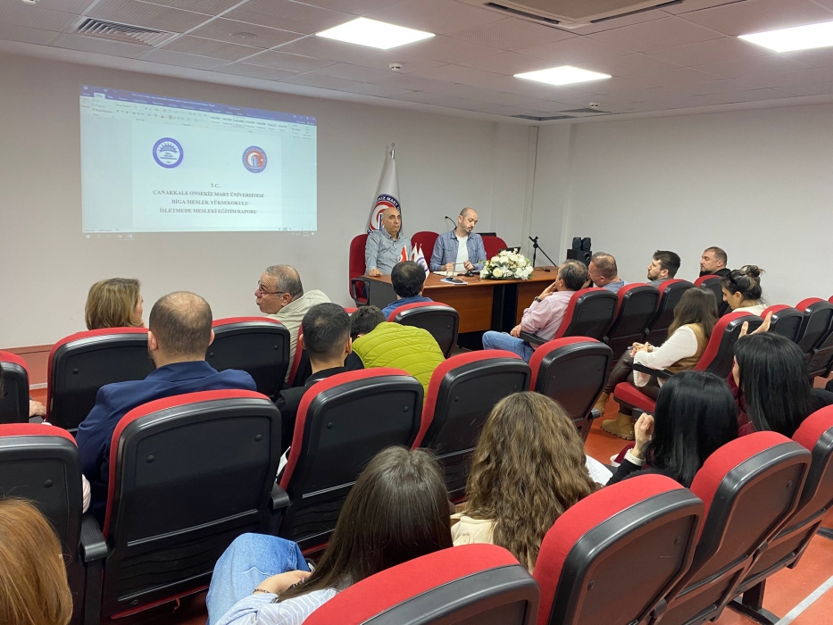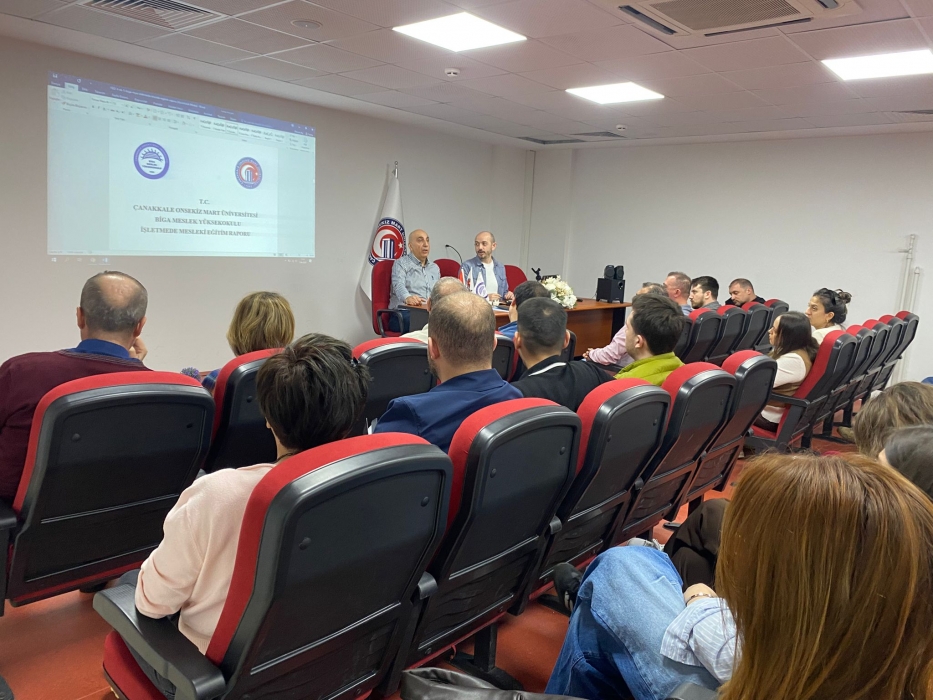 Biga Meslek Yüksekokulu’nda 2025–2026 Eğitim Öğretim Yılı Bahar Dönemi kapsamında 09 Nisan 2026 Perşembe günü okulumuz konferans salonunda 3+1 İşletmede Mesleki Eğitim (İME) dersini tercih eden öğrencilerle süreç değerlendirme toplantısı gerçekleştirildi.