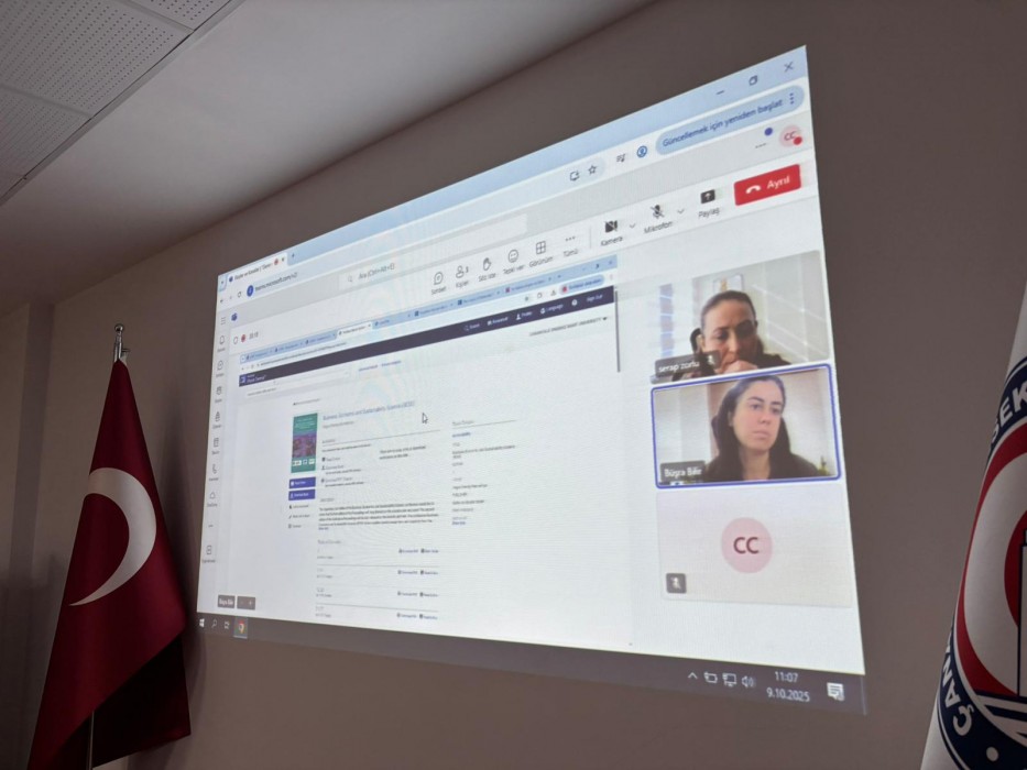 09.10.2025 tarihinde okulumuz konferans salonunda Öğr. Gör. Cansu Cengiz Aygün moderatörlüğünde Teams Platformu üzerinden online olarak üniversite kütüphanelerine bağlı kaynaklarla ilgili eğitim verildi.