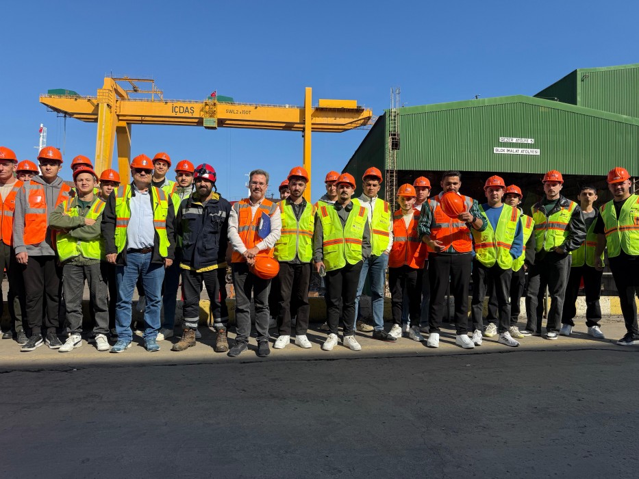 Daha sonra sırasıyla iki adet geminin inşa edildiği Gemi İnşa Tersanesi - Gemi Bakım Onarım Kuru Havuzu, deniz suyundan içme suyu elde edilen Su Arıtma Tesisi ve inşaat demirinin üretildiği Çelik Haddehanesini ziyaret ettiler. Gezilen bölümlerin yetkilileri tarafından oldukça sıcak karşılanan öğrencilerimize, faaliyet konuları hakkında yeterli bilgi verilmiştir.