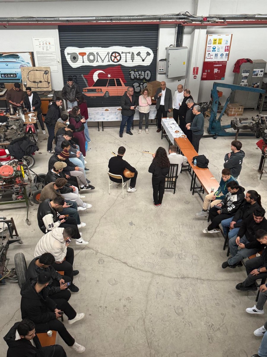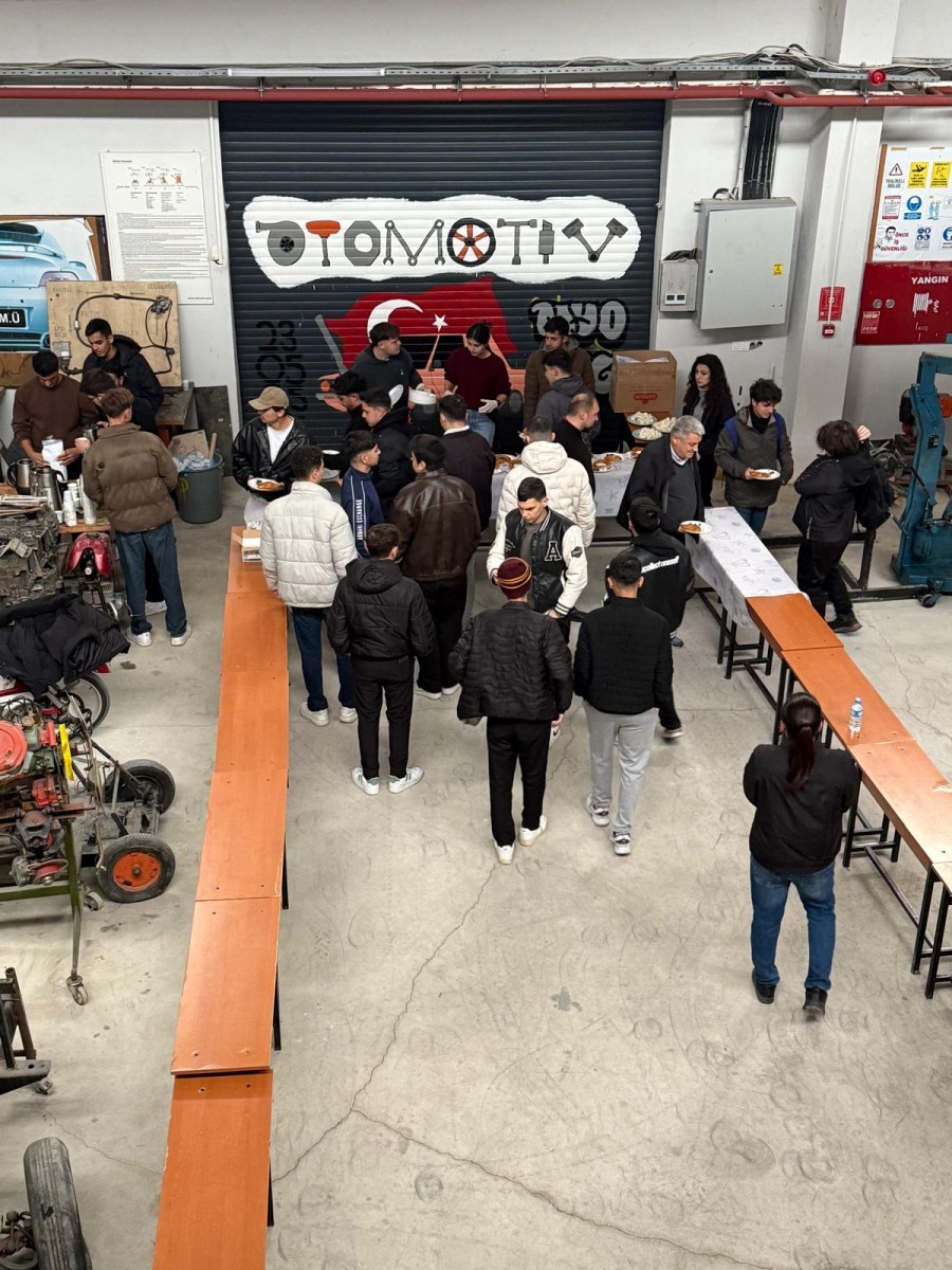 Otomotiv Teknolojisi Programı 1. ve 2. Sınıf öğrencileri 3 Aralık 2025 Çarşamba günü kahvaltı etkinliğinde bir araya geldi. Bölüm Başkanı Öğr. Gör. Zafer Özgür, Program Danışmanı Öğr. Gör. İlkay Onur Şerbetçi ve öğrenciler tarafından organize edilen etkinliğe, Okul Müdürümüz Öğr. Gör. Ertuğrul Bilgücü, Müdür Yardımcıları Dr. Öğretim Üyesi Halife Çağlar, Öğr. Gör. Muradiye Özel Ödül ve akademik personel de katılım sağlamıştır.