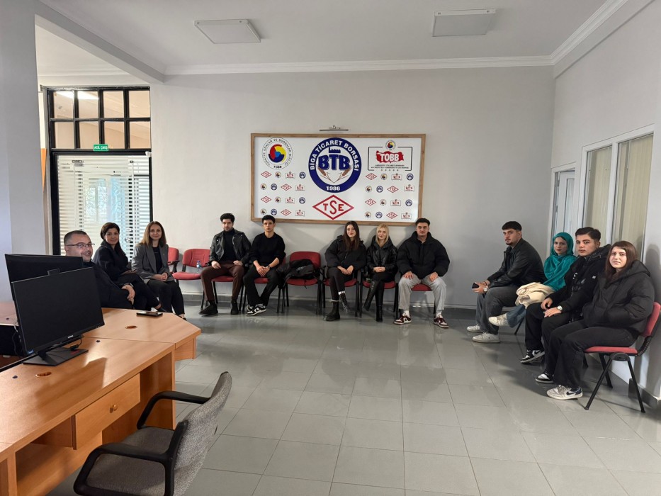 Pazarlama Program Danışmanı Öğr. Gör. Figen Kılıç ve Öğr. Gör. Dr. Emine Çetin gözetiminde, Pazarlama Programı 2. Sınıf öğrencilerinin, Biga Ticaret Borsası “Salon Satışları” işlemlerini yerinde görmek ve borsanın işleyişi öğrenmek için teknik gezi düzenlendi. 04.12.2025 tarihinde düzenlenen gezide öğrenciler 3+1 uygulamasına gitmeden önce borsadaki işlemler hakkında bilgi alma ve salon satışlarını öğrenme fırsatı elde ettiler.